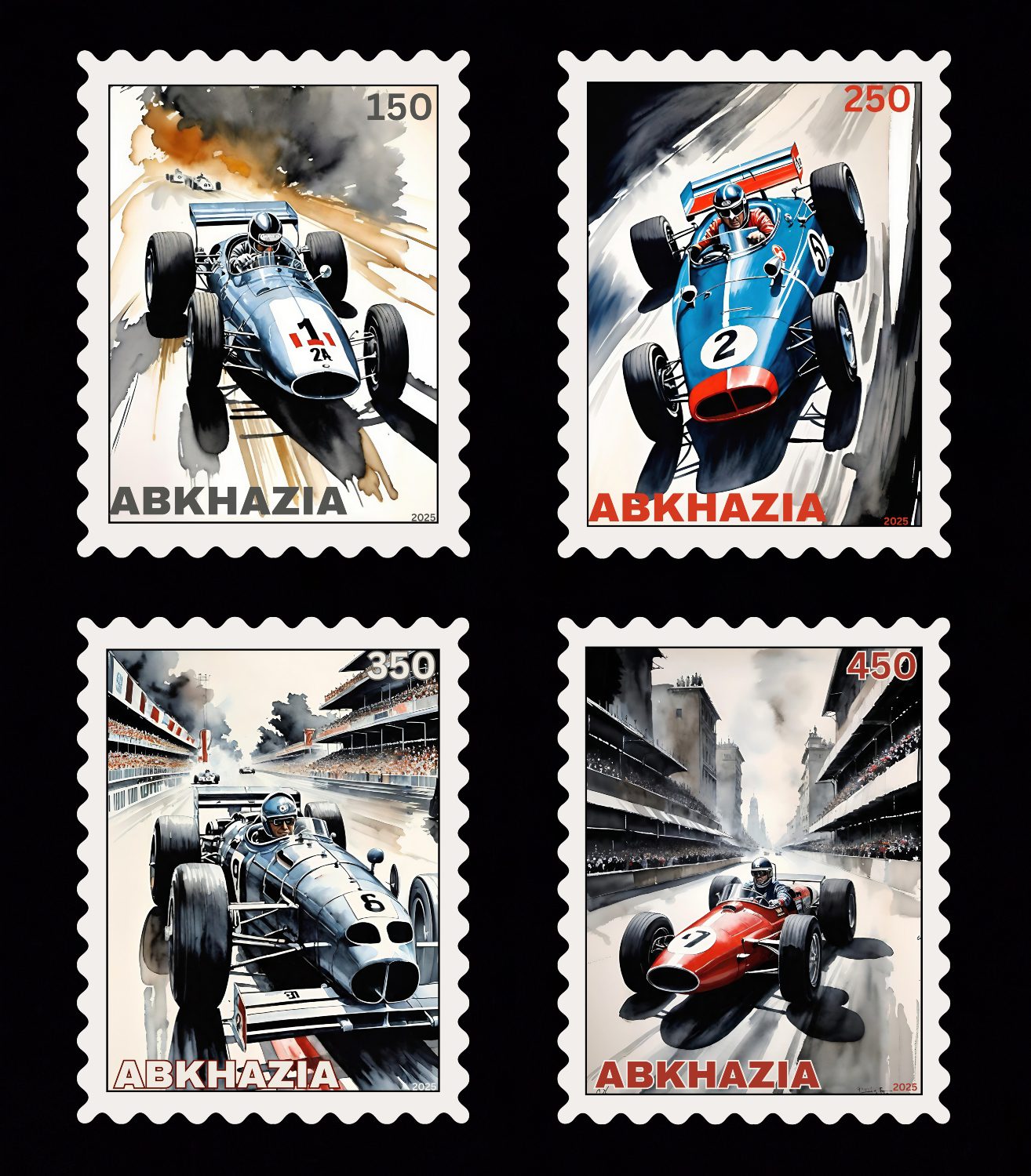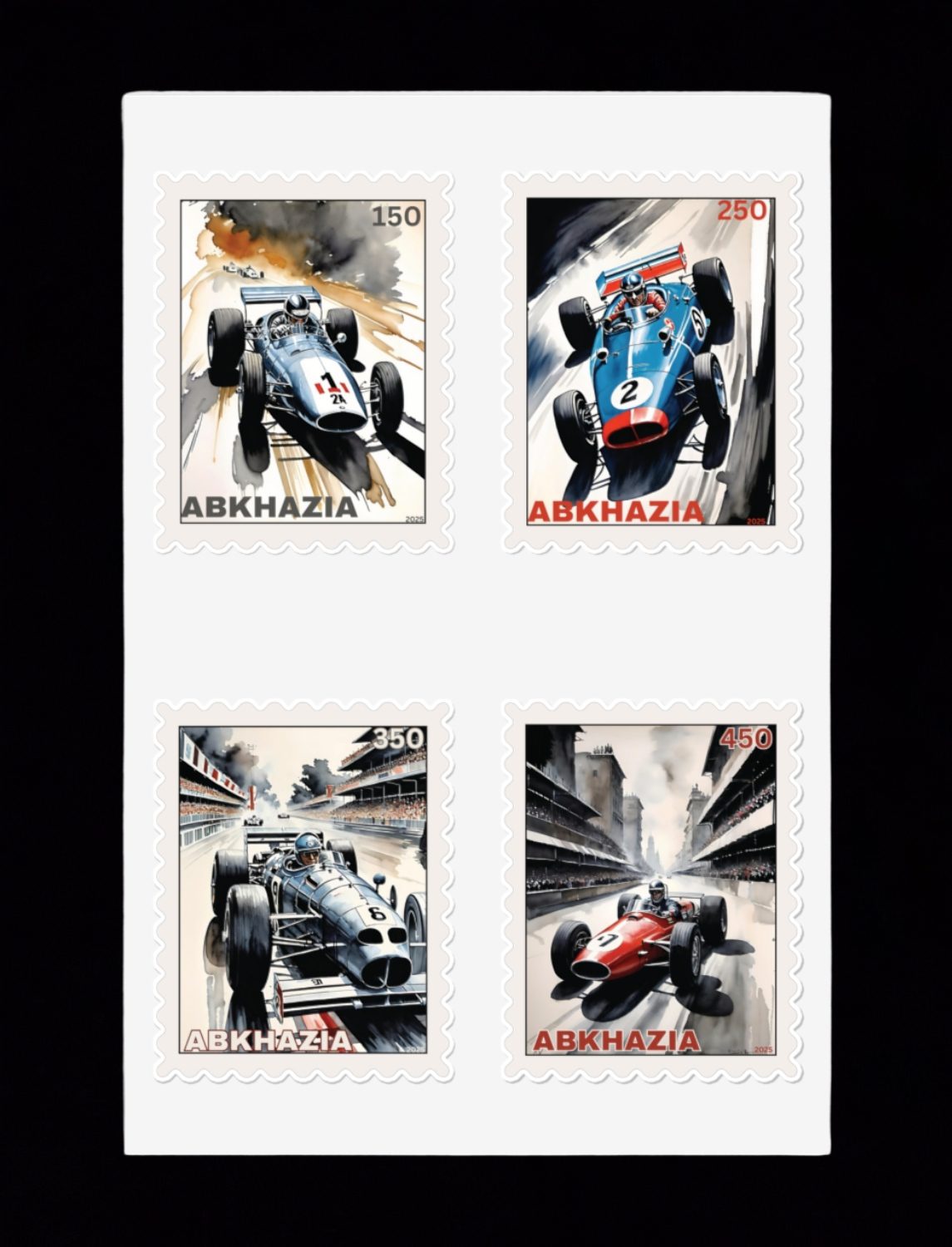 Abkhazia Local Post Car Race Auto Cinderella Stamps Self-Adhesive Sticker Sheet of 4.