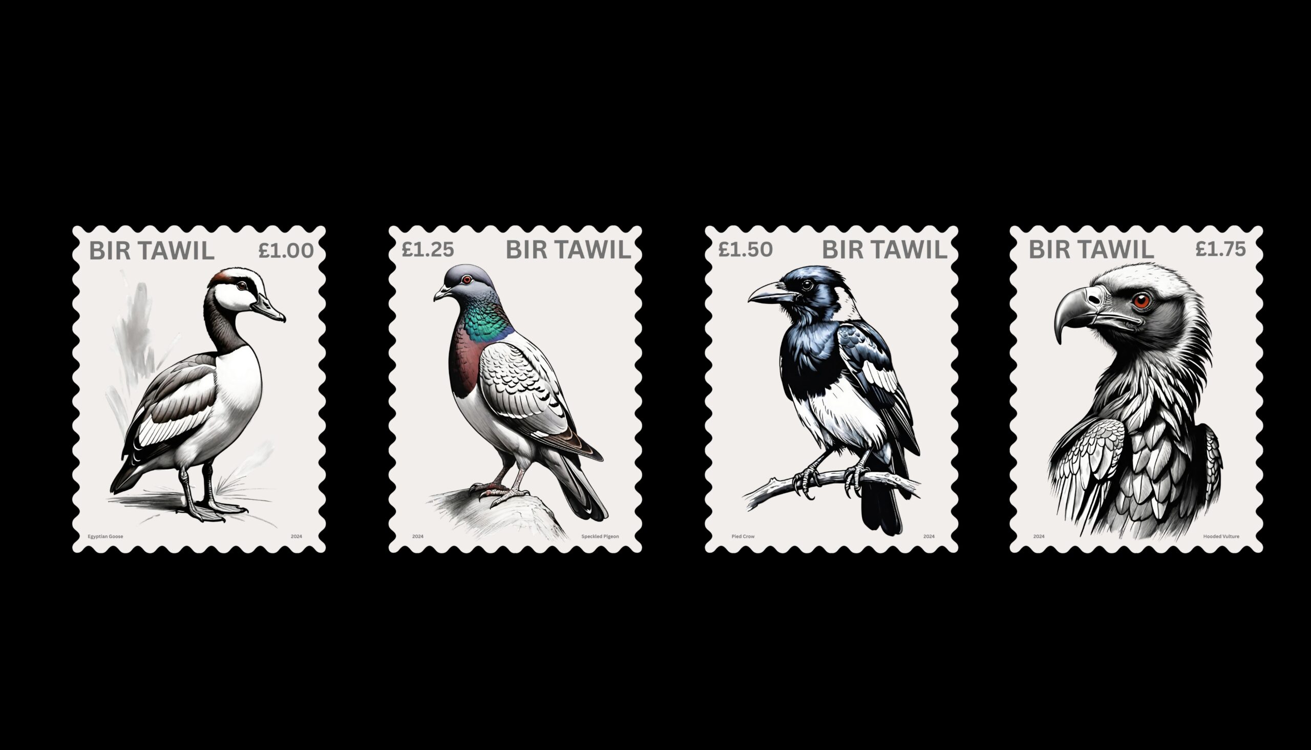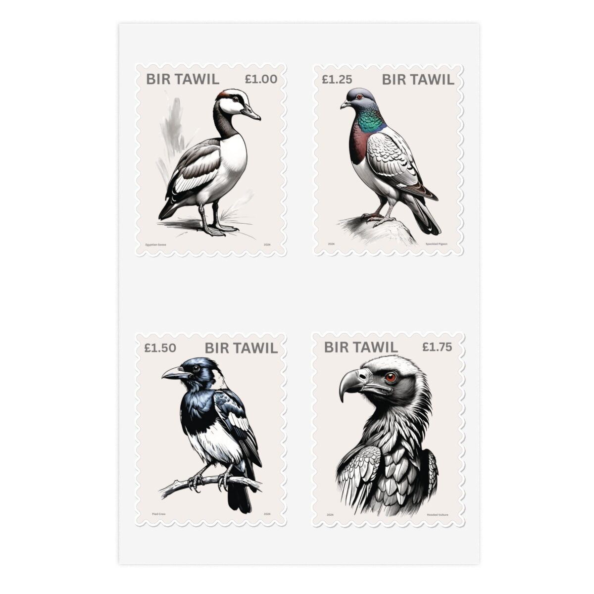 Bir Tawil Local Post African Birds Cinderella Stamps Self-Adhesive Sticker Sheet of 4.